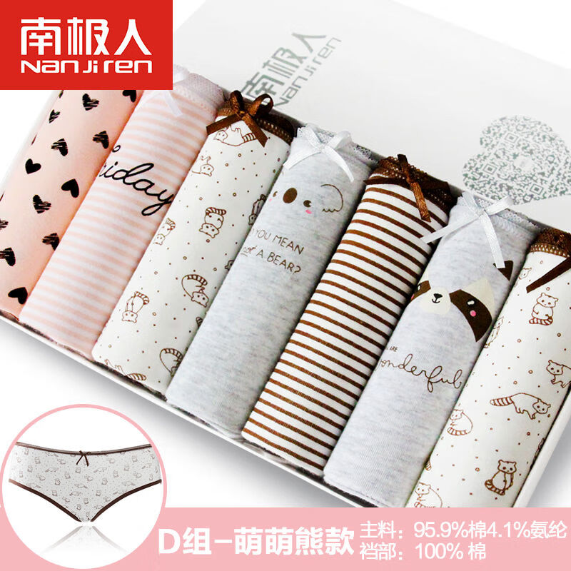 南极人女士内裤全棉裆三角内裤女生纯棉裆中腰无痕少女短裤新 萌萌熊发7条 M