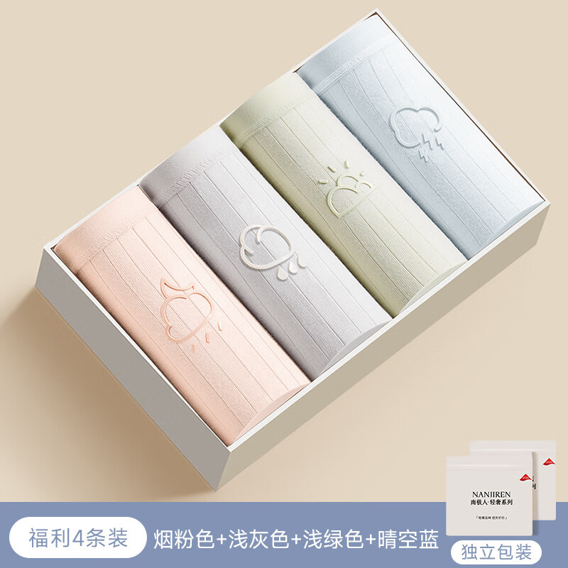 南极人发育期内裤女生7a级大童青春期初高中学生短裤 (装)烟粉色+浅灰色+浅绿色+晴空蓝 4条 M _(适合70-90斤)