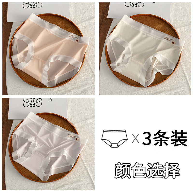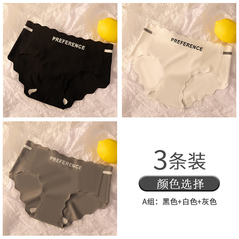 南极人女士内裤女冰丝无痕裆女生透气小香风2025新款三角短裤 黑色+白色+灰色 M