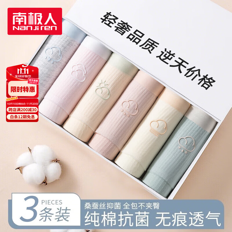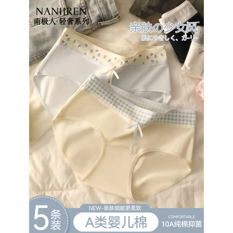 南极人内裤女纯棉透气精品中腰无痕可爱女生2025新款少女生三角内裤