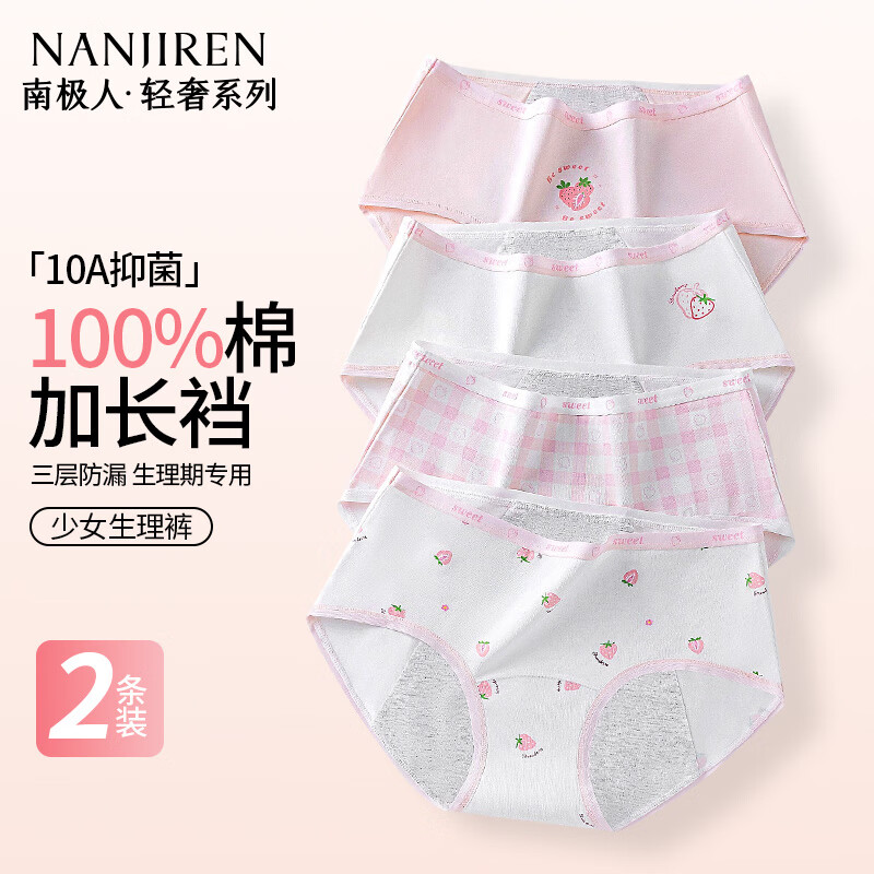 南极人(Nanjiren)少女生理内裤女士内裤10A抑菌纯棉裆月经姨妈神器防侧漏三角裤2条
