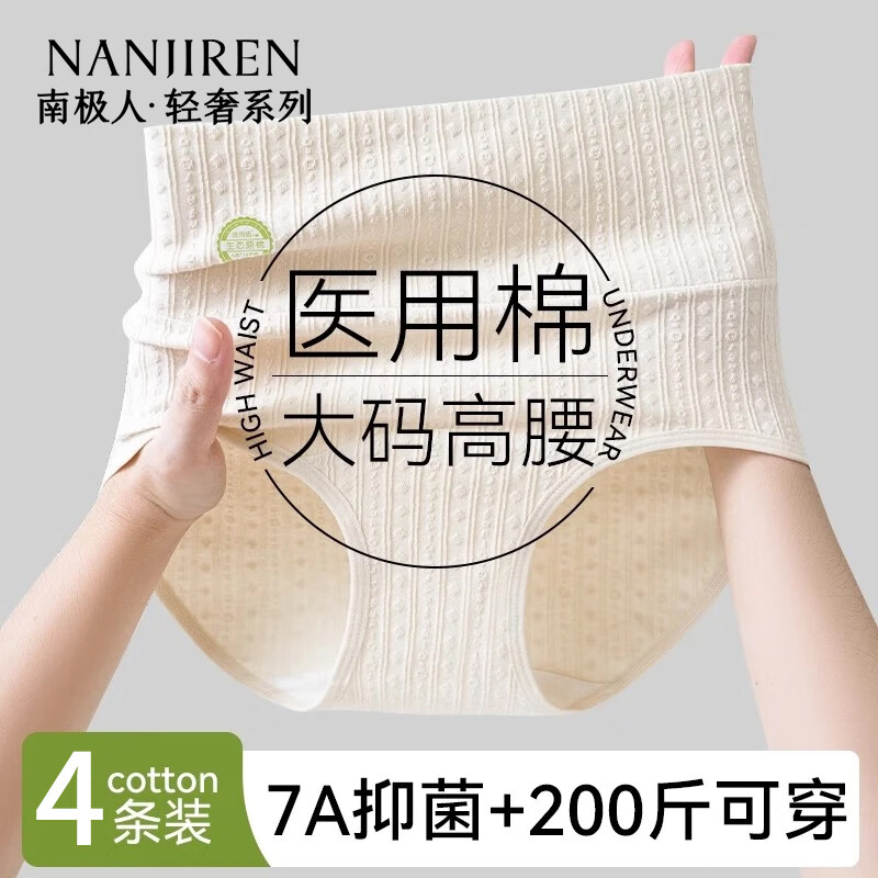 南极人内裤女士纯棉抗菌无痕高腰三角内裤收腹女生大码透气短裤2025新款 【轻奢系列 抗菌 独立包装】- 4条 3XL 【适合160-180斤】