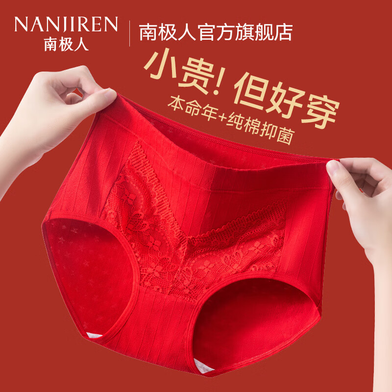 南极人(Nanjiren)红色内裤女士高腰提臀无痕大码女生本命年马年短裤 鸿运当头 3条 M