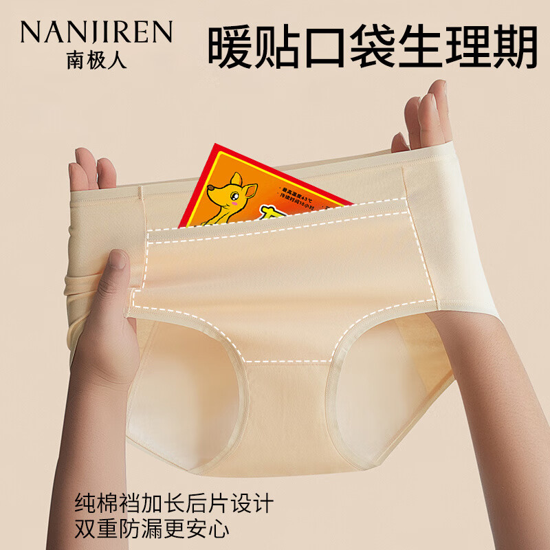 南极人女生内裤女士纯棉生理期月经内裤防漏3A抗菌三角裤打底裤女2条XL