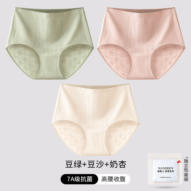 南极人高腰内裤女士棉2025新款收腹提臀女生无痕三角短裤 豆绿+豆沙+奶杏 M