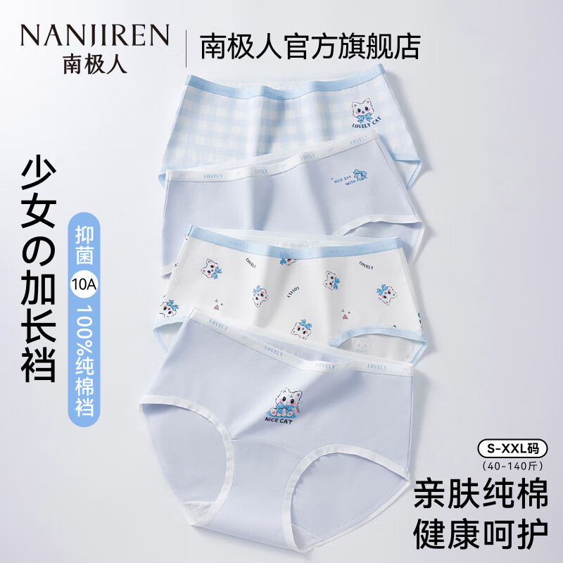 南极人(Nanjiren)内裤女生棉棉加长裆2025新款女童初中生少女透气三角裤 《试穿说明》 S
