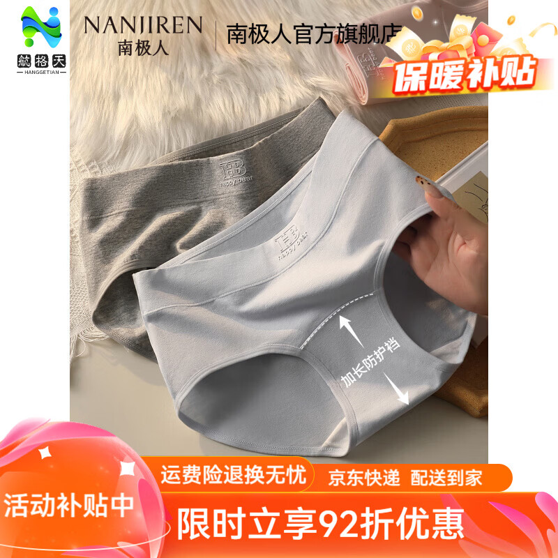 南极人(Nanjiren)女士内裤加长裆2025新款中腰少女生三角短裤头 【装】灰色+蓝色+肤色 3条 M