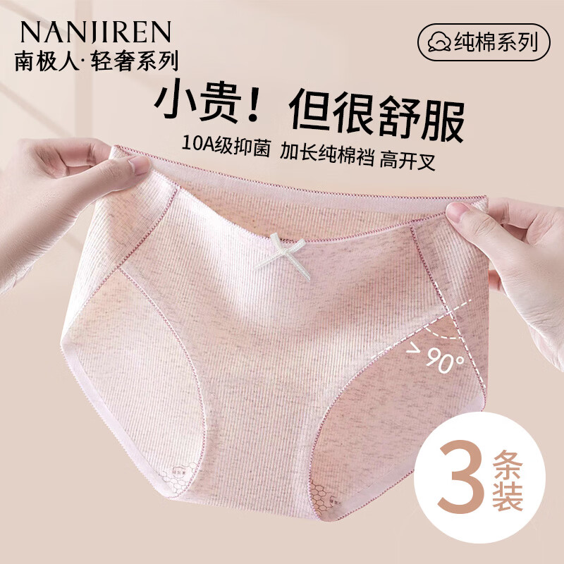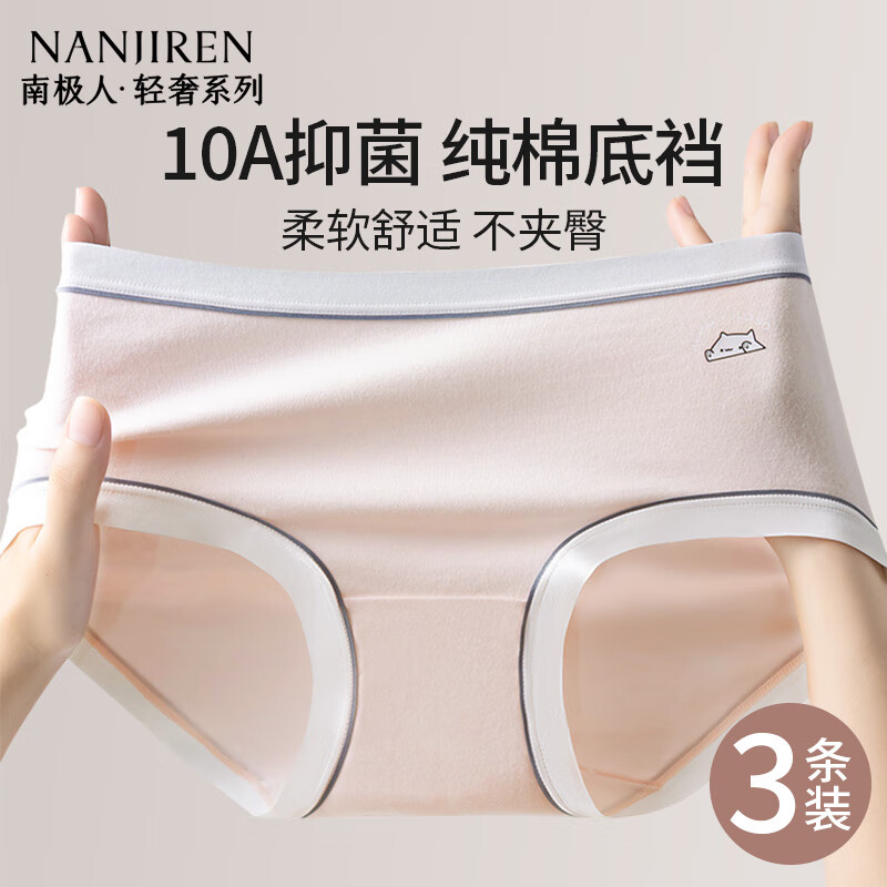 南极人(Nanjiren)纯棉内裤女10A抑菌无痕女士内裤中腰可爱女生三角裤3条L
