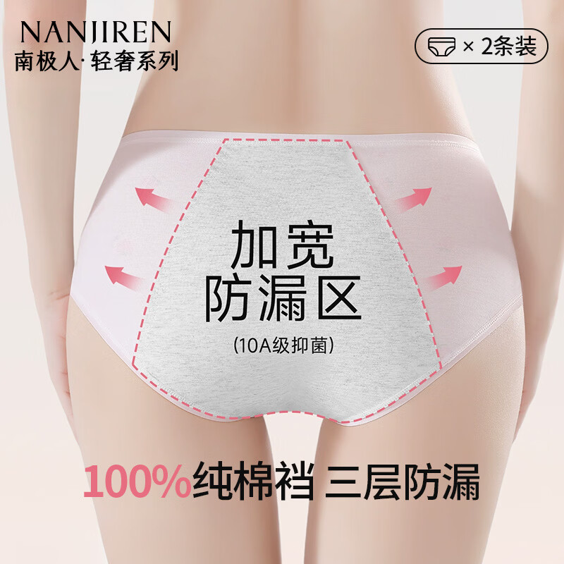 南极人女生内裤女士纯棉生理期月经内裤防漏3A抗菌三角裤打底裤女2条M