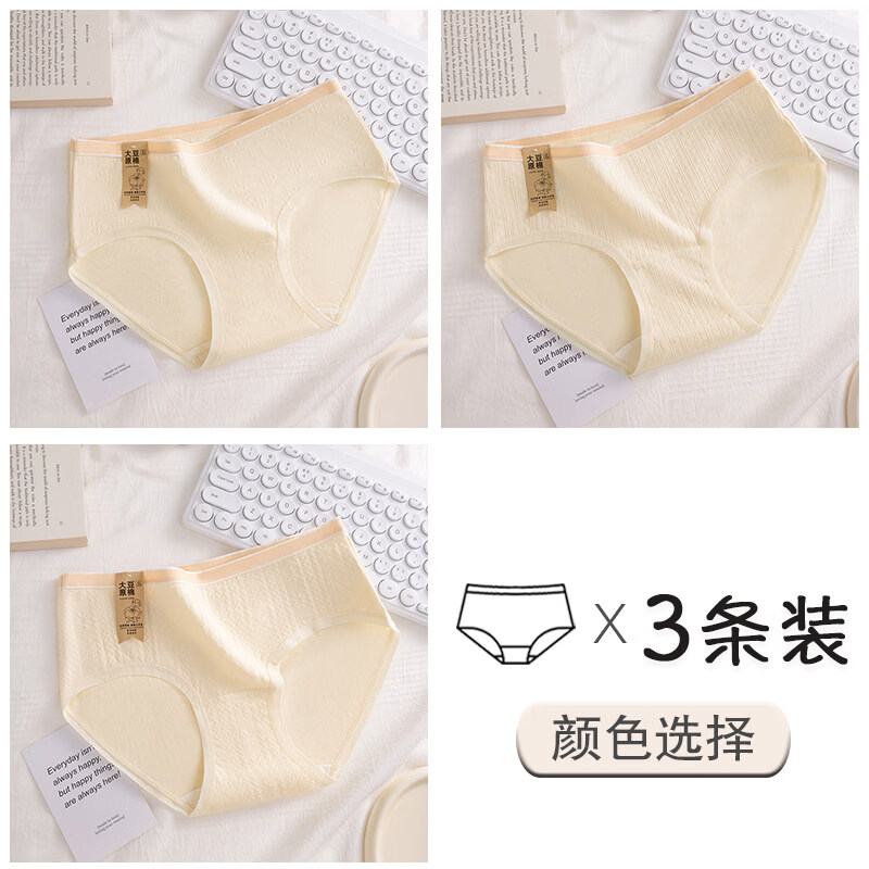 南极人内裤女士棉2025新款收腹提臀女生无痕三角短裤 豆绿+豆沙+奶杏 M