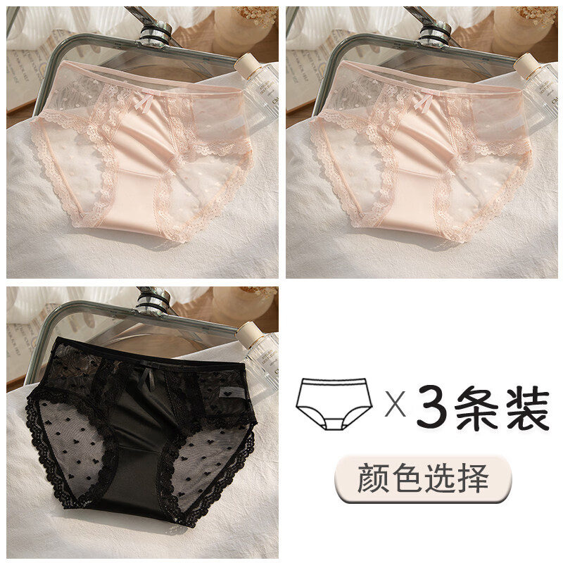 南极人蕾丝内裤女士夏季薄款小香风少女生三角短裤2025款 B组:粉色+粉色+黑色 M
