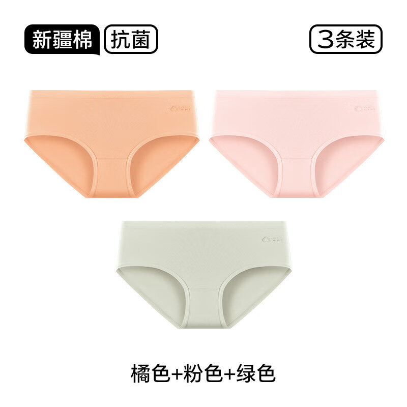 南极人女士内裤女无痕冰丝抗菌春夏瑜伽内裤提臀中腰不夹臀少女生三角裤 【浅粉+浅肤+果绿】- 3条 M 【适合 80-100斤】