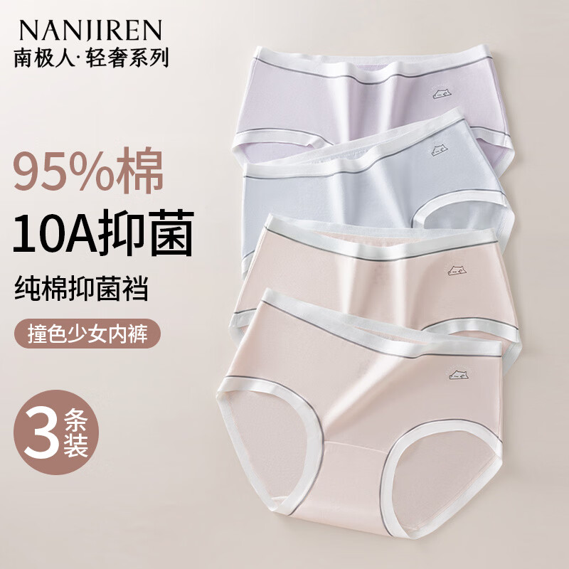 南极人(Nanjiren)内裤女士内裤纯棉10A抑菌加长裆高开叉少女生内裤中腰三角裤3条M