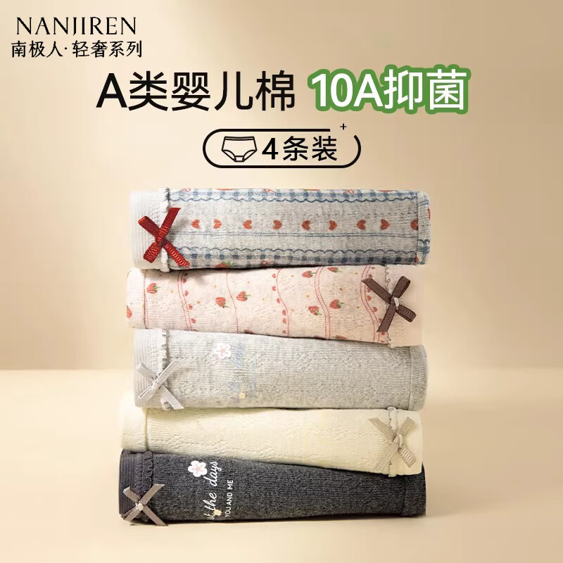 南极人内裤女士纯棉抗菌无痕高腰三角内裤收腹女生大码透气短裤2025新款 【轻奢系列 抗菌 独立包装】- 4条 M 【适合80-100斤】