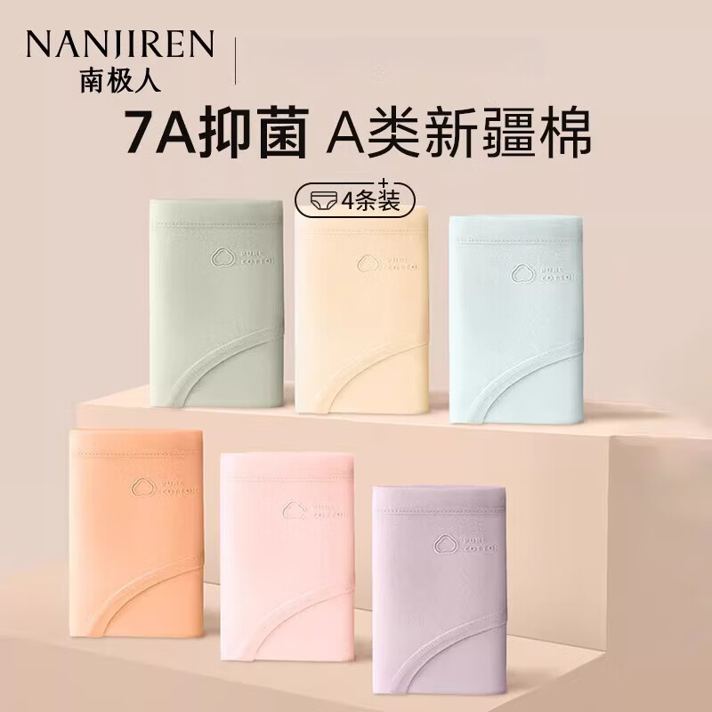 南极人(Nanjiren)女士内裤女100%纯棉10A抑菌加长裆中腰女生三角裤独立包装4条M