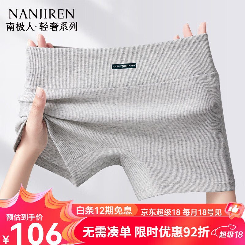 南极人(Nanjiren)四角内裤女士短裤衩少女生2026新款a类棉平角安全裤 灰色+白色 M