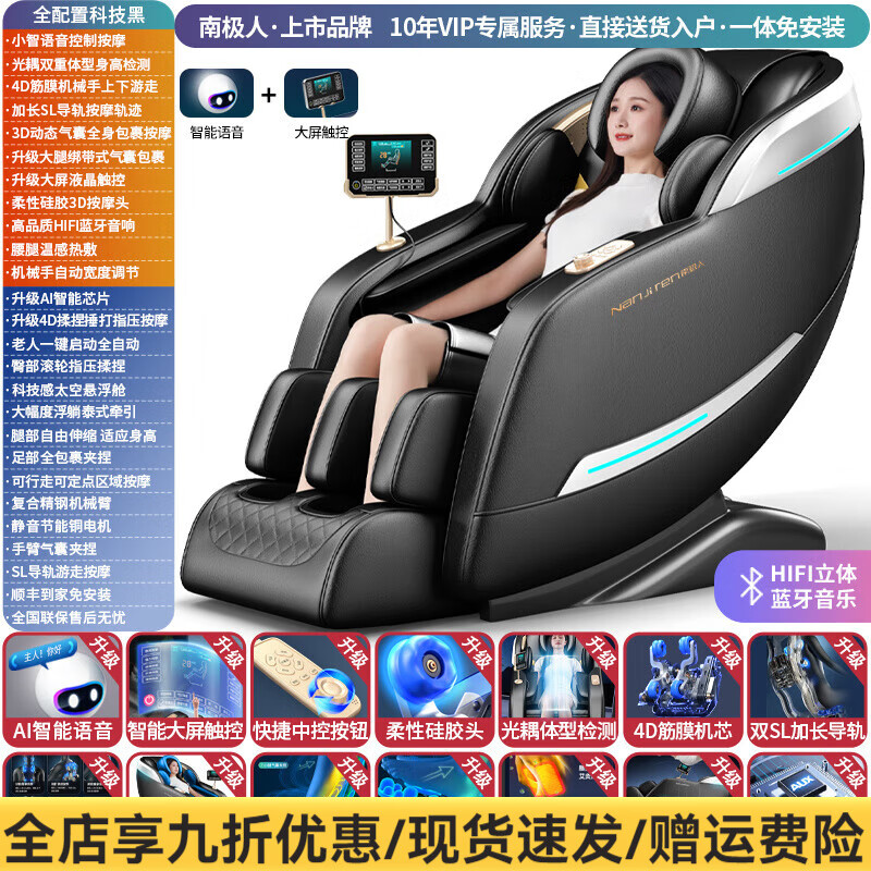 南极人(Nanjiren)新款4D按摩椅双SL导轨家用全身自动多功能太空舱 全配黑4D机械手双SL导轨+语音智