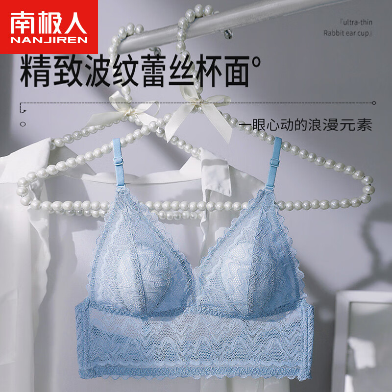 南极人文胸女士内衣女夏季超薄兔耳朵杯法式三角杯蕾丝文胸罩黑色80BC