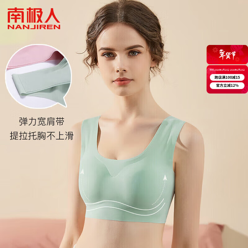 南极人文胸无钢圈运动内衣女聚拢防震无痕睡眠胸罩送妈妈