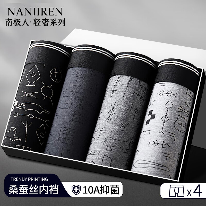 南极人男士内裤精梳纯棉10A抗菌蚕丝裆新款平角男生四角男式短裤头2XL