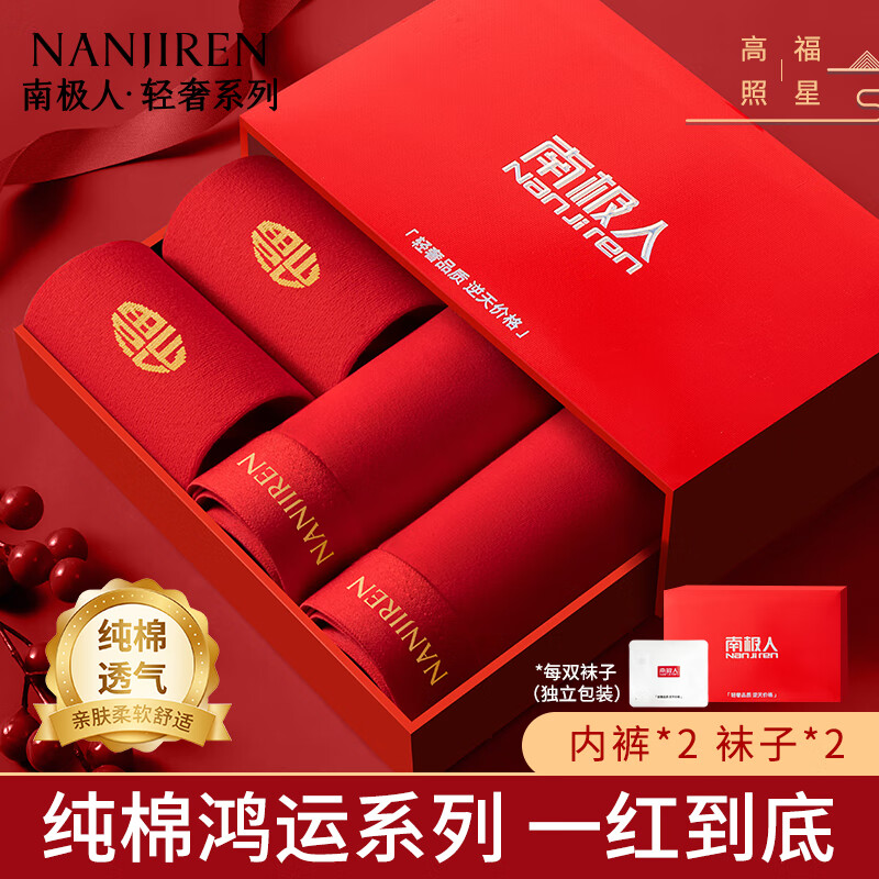南极人【鸿运内裤袜子套装礼盒】本命年马年纯棉红色内裤男士结婚送礼2X