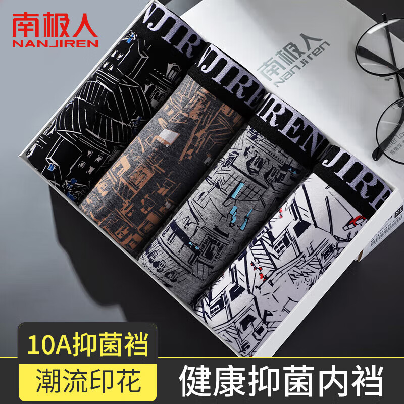 南极人男士内裤男式纯棉平角裤头抗菌防螨透气四角男生短裤衩4条XL