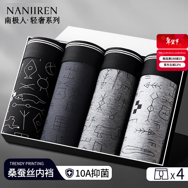 南极人【精梳棉10A抑菌】男士内裤男纯棉平角裤蚕丝内档升级新品4条2XL