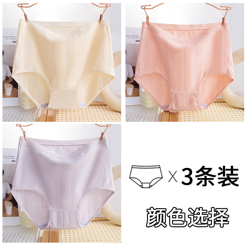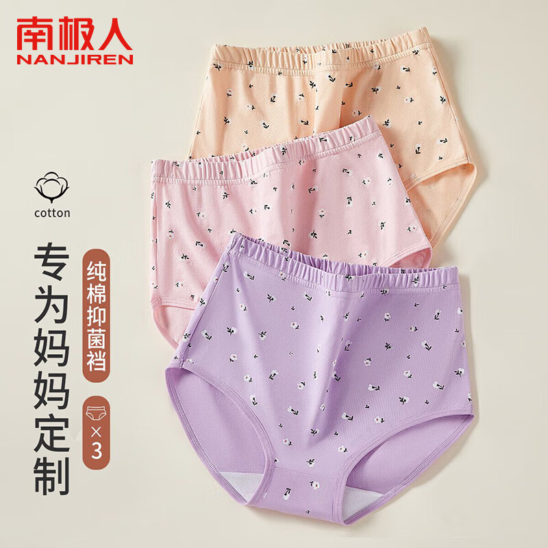 南极人3条女士内裤女中老年人纯棉高腰抑菌裆加肥加大送母亲弹力三角裤