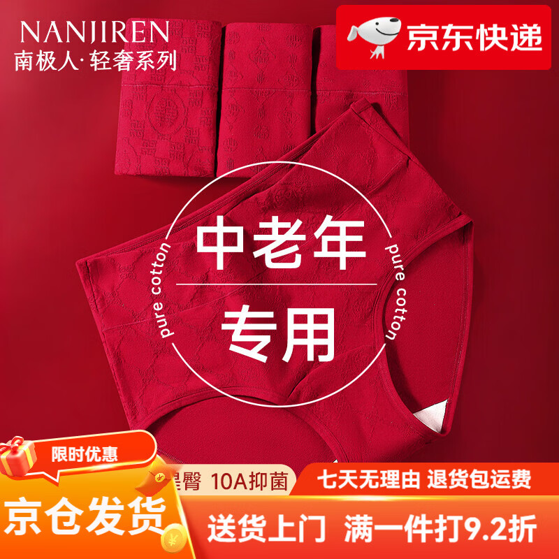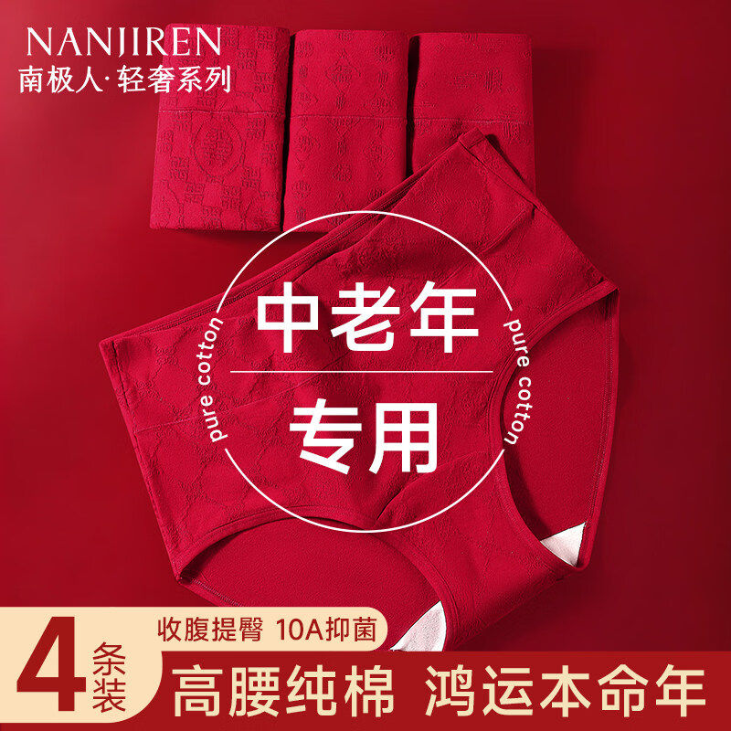 南极人(Nanjiren)女士内裤10A级中老年妈妈高腰大红色本命年三角裤 【装】诸事顺遂+朱红祥瑞+喜乐绵长 3条 M