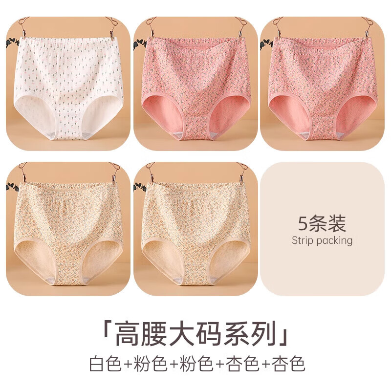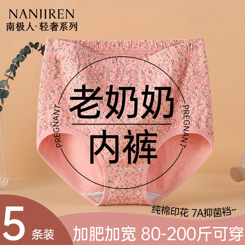 南极人(Nanjiren)中老年女士纯棉高腰内裤大尺码三角短裤妈妈奶奶专用 白色+粉色+粉色+杏色+杏色_ 5条 M _【80-105斤】