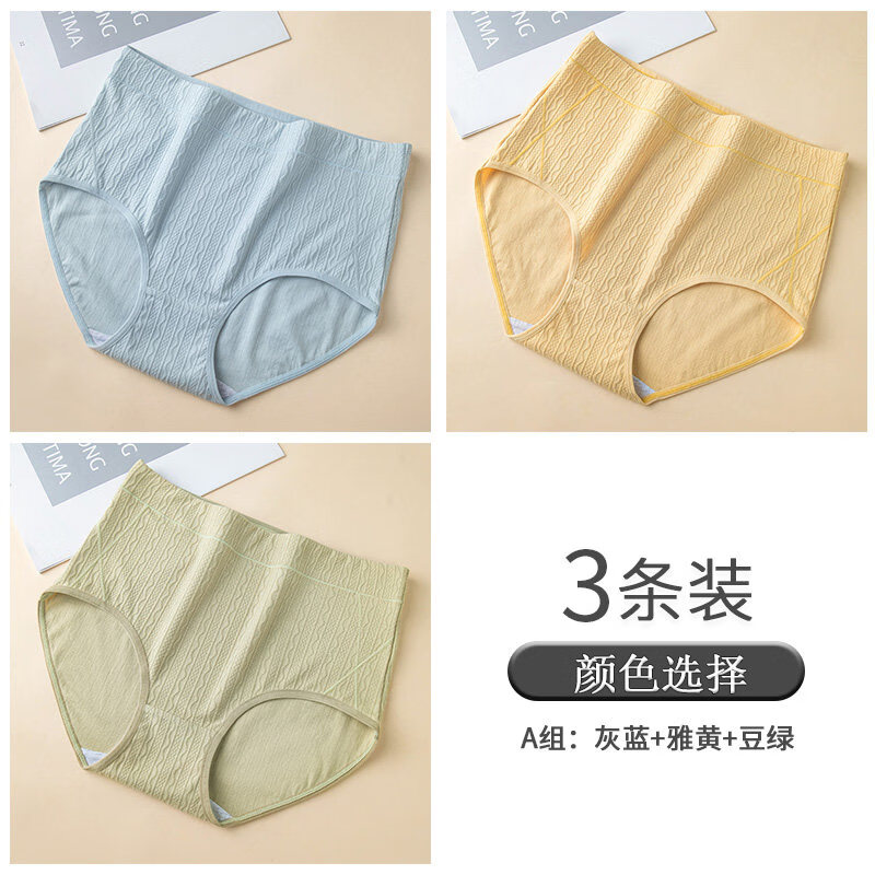 南极人妈妈内裤女士中老年大尺码高腰收腹胖mm亲肤无痕女士短裤 灰蓝+雅黄+豆绿_【装】 3条 M _【80-105斤】