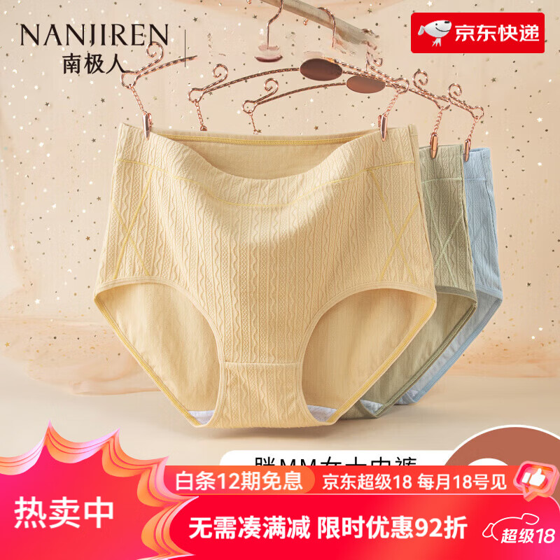 南极人(Nanjiren)妈妈内裤女士2025新款中老年人大尺码高腰胖mm三角短裤头 高腰大尺码肤色+粉色+紫色 M _适合80-105斤