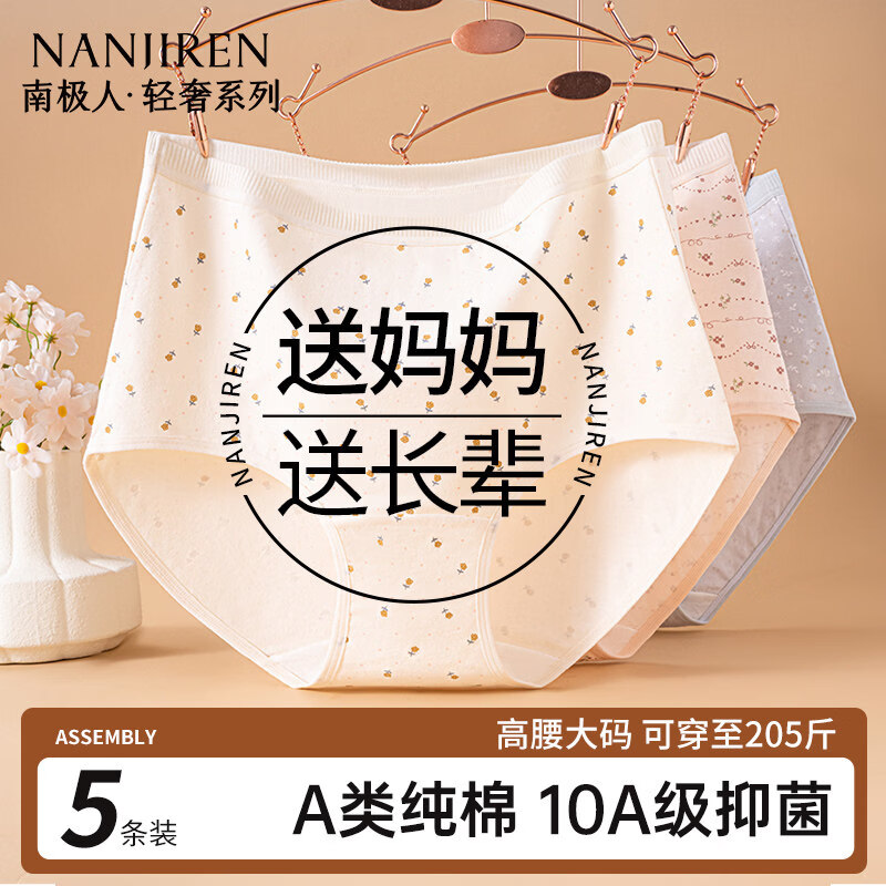 南极人中老年人内裤女纯棉抑菌裆高腰大码内裤加肥送妈妈奶奶三角裤4条