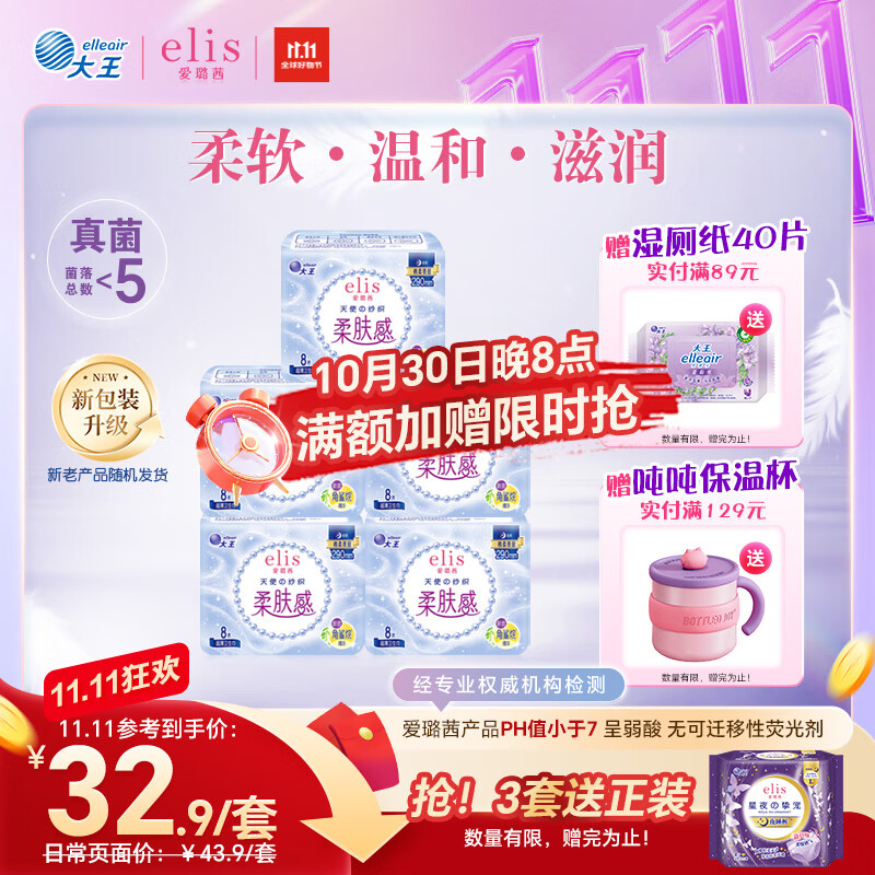 爱璐茜(elis)大王天使棉柔日用卫生巾290mm40片超薄姨妈经期卫生巾京东自营