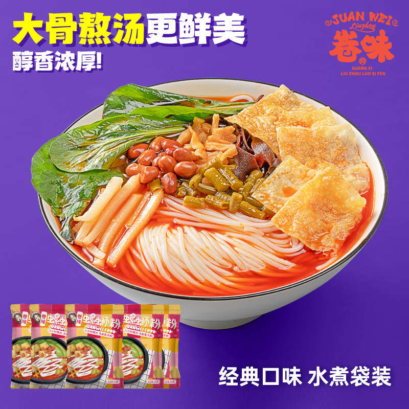 卷味【冲泡螺蛳粉】卷味螺蛳粉广西柳州特产加辣螺丝粉免煮盒装300g 【紫色经典原味】300g*4盒