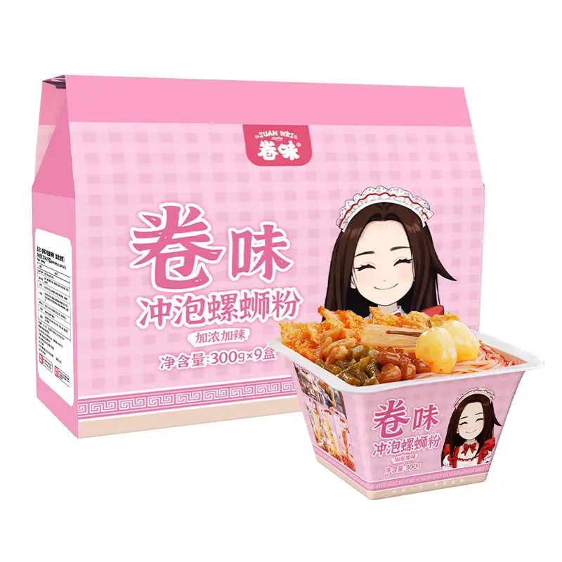 卷味螺蛳粉冲泡型方便速食米线广西柳州特产螺丝粉300g*9盒礼盒装 粉色冲泡9盒