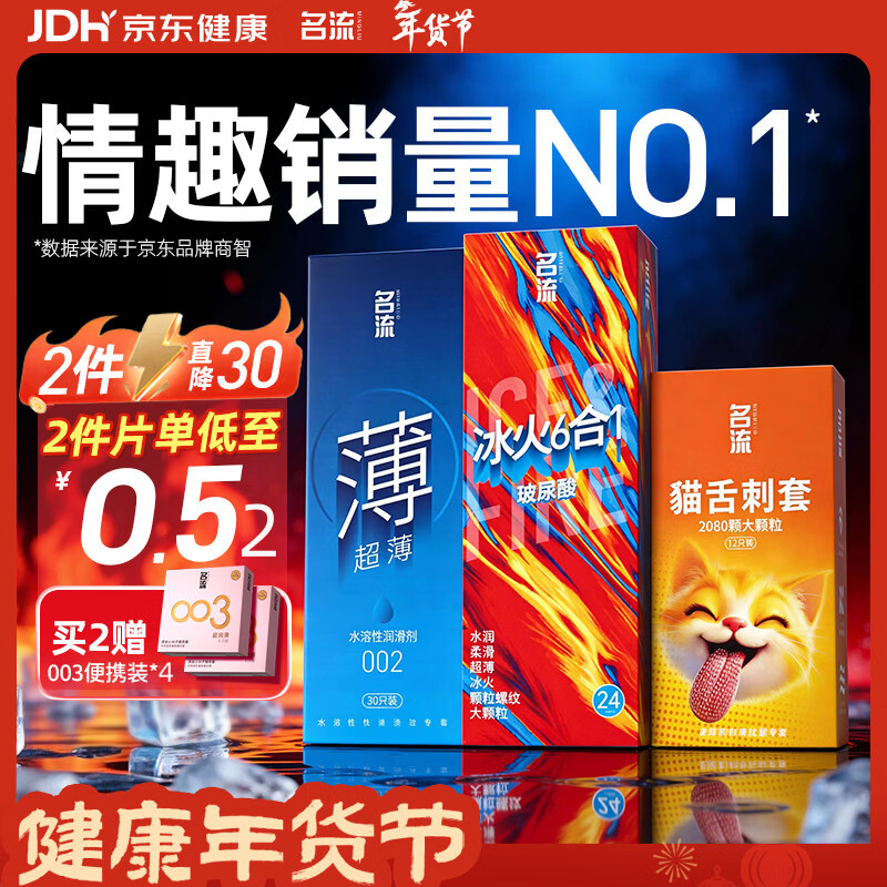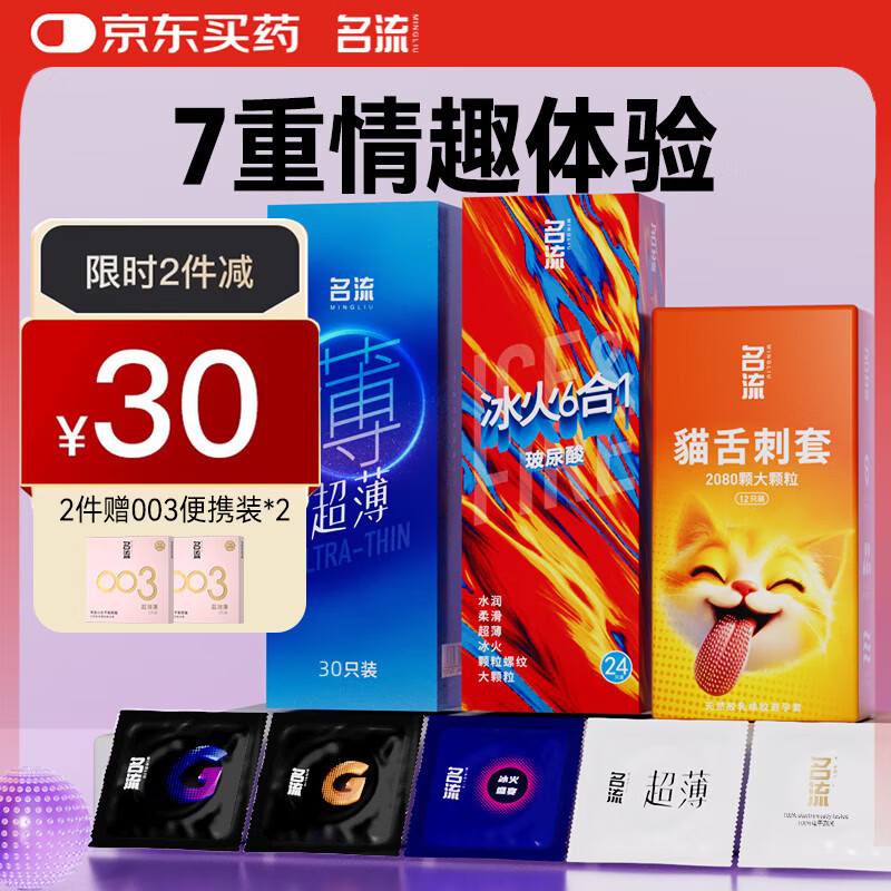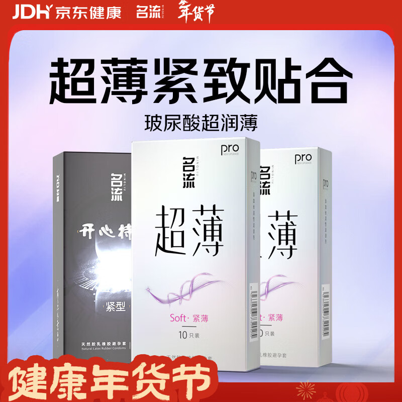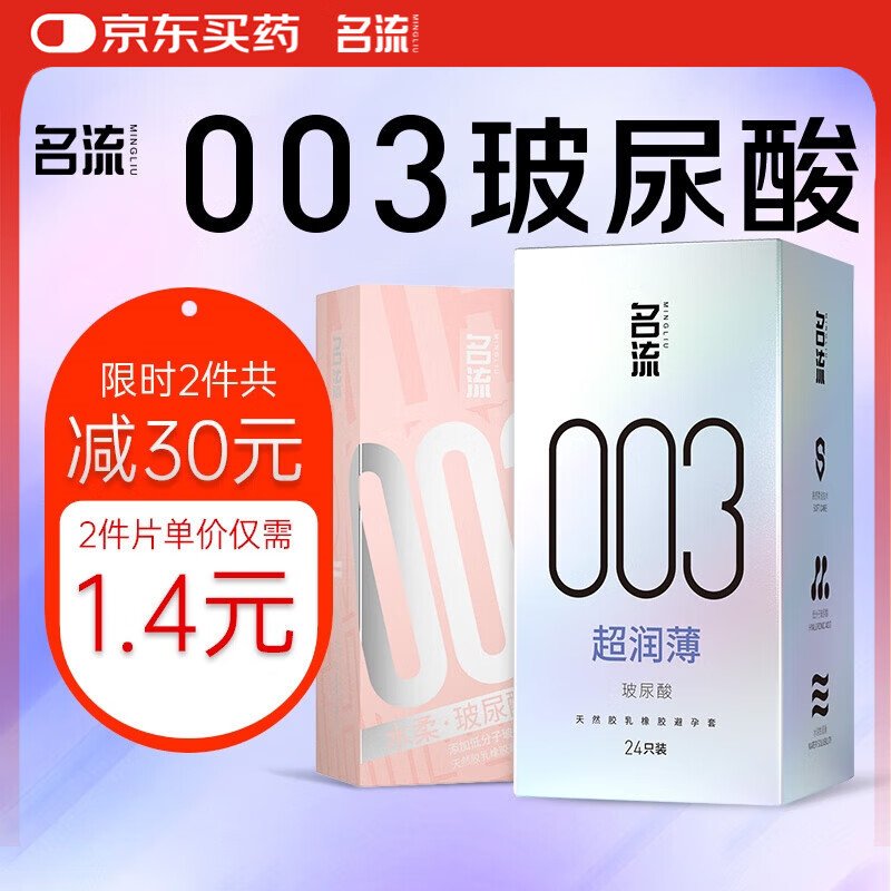 名流 玻尿酸避孕套超薄隐形安全套套003润滑28只MO男女性计生用品