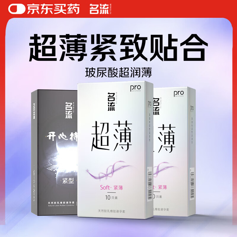 名流避孕套MO003玻尿酸超薄隐形裸入安全套套10只中号男女用成人用品