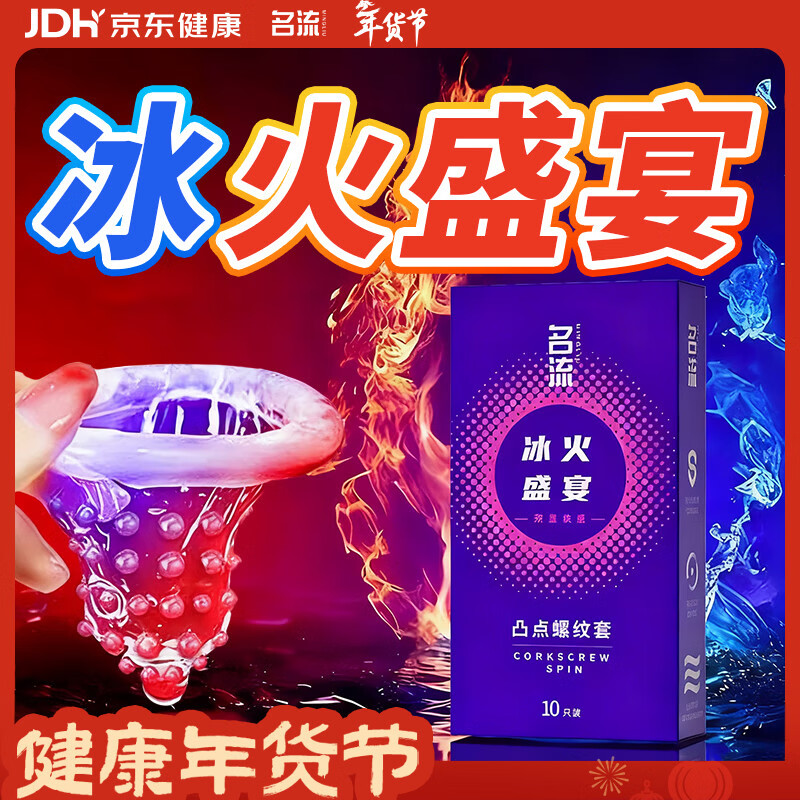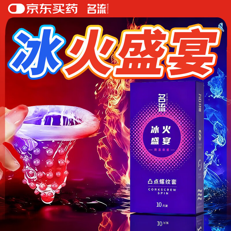 名流避孕套 安全套 冰火盛宴10只装 大颗粒凸点螺纹型52mm