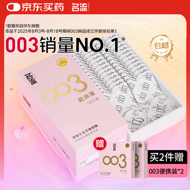 名流避孕套安全套套003玻尿酸润滑超薄隐形18只byt成人计生男女性用品