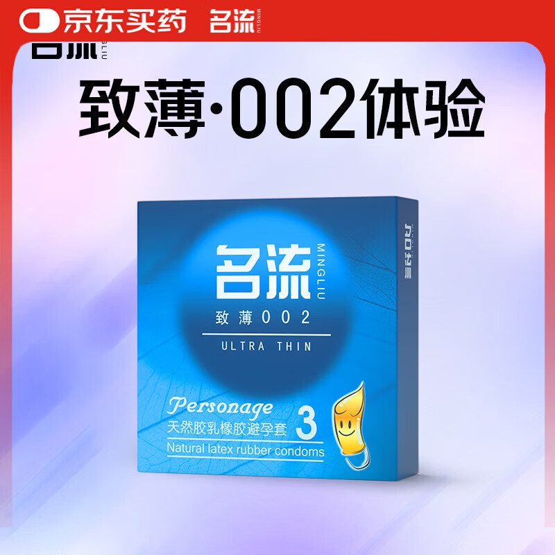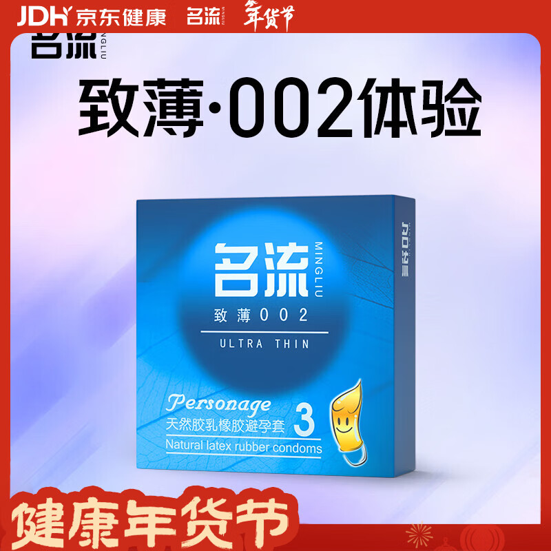 名流避孕套超薄致薄002安全套成人情趣性用品男用光面超薄中号3只装