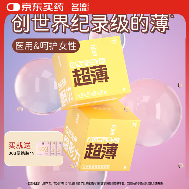名流玻尿酸避孕套安全套套003超薄空气MO润滑男女性高嘲用计生用品byt