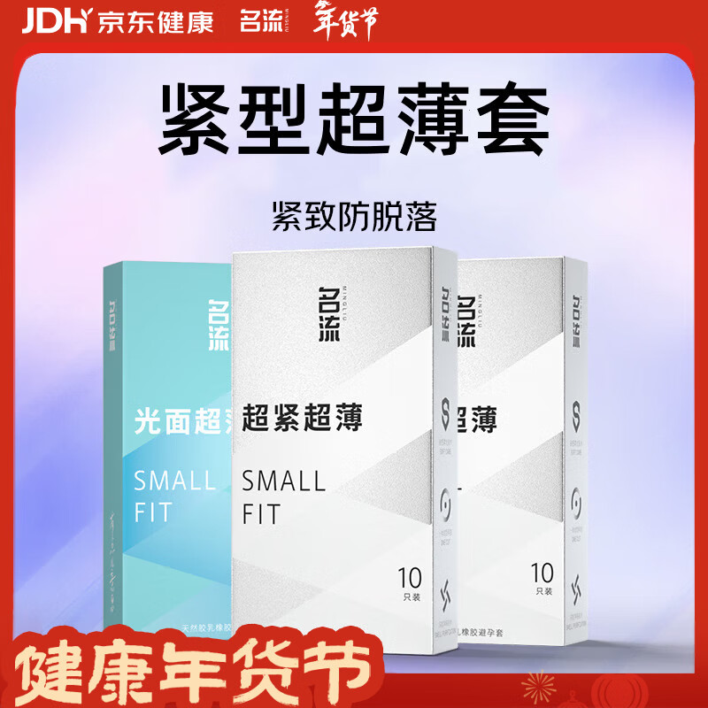 名流避孕套超小号紧绷10只装安全套套男用光面超薄型45mm成人计生用品