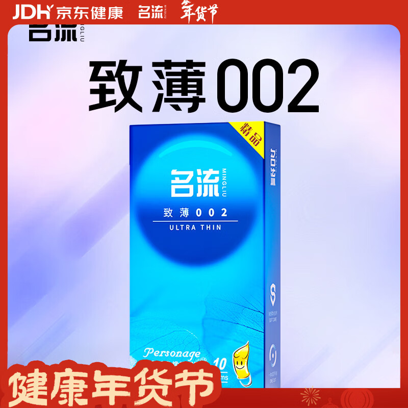 名流超薄避孕套安全套套光面52mm致薄002型10只光面成人性用品男女用