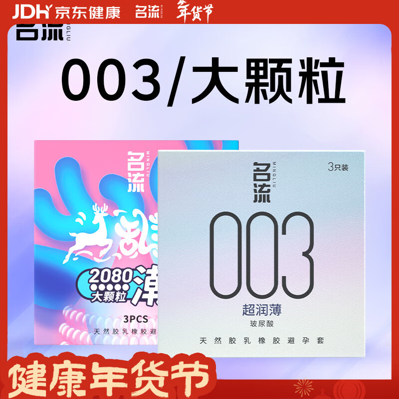 名流避孕套玻尿酸安全套套003光面3只&G点大颗粒3只计生男女成人用品