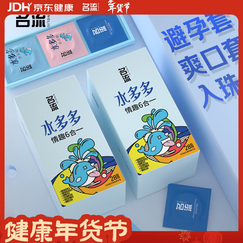 名流避孕套超薄安全套套水多多玻尿酸28只+入珠2个颗粒秒喷计生用品