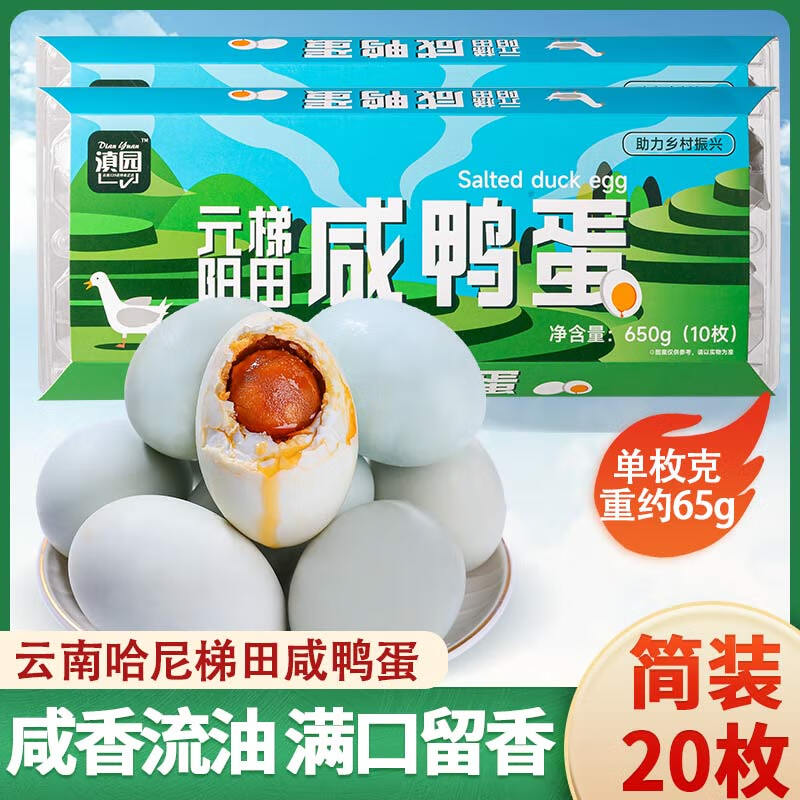 滇园云南梯田咸鸭蛋云南特产咸鸭蛋流油流油熟咸鸭蛋即食下饭鸭蛋黄 1300g 咸鸭蛋共65g*20枚