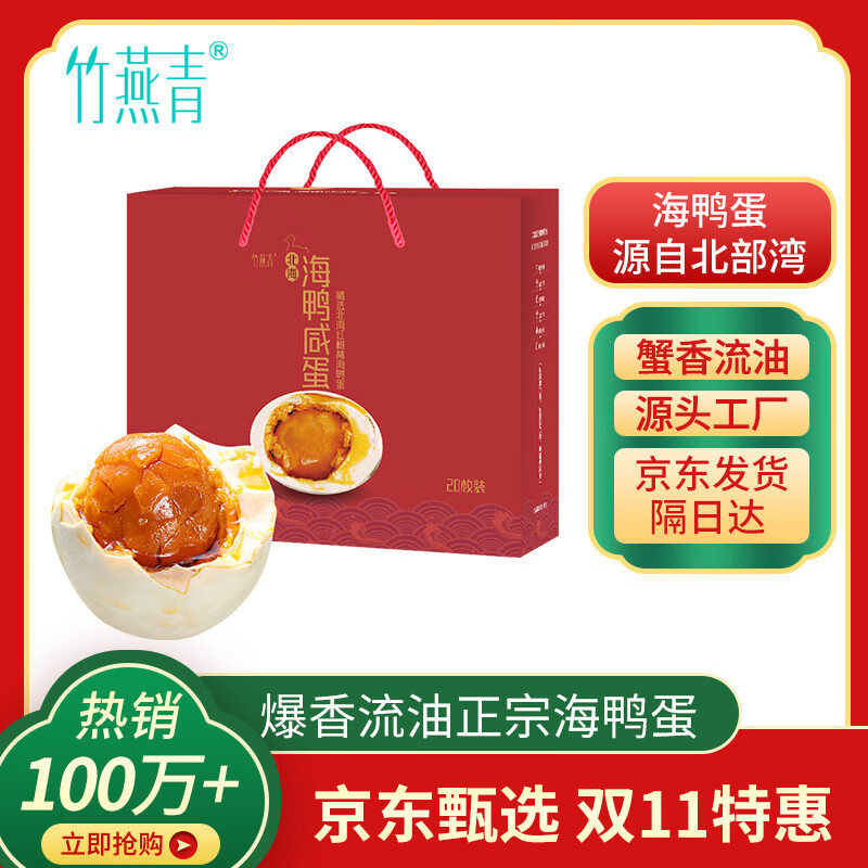 竹燕青北海咸鸭蛋70g*20枚精美礼盒开袋即食熟烤海鸭蛋起沙流油企业团购