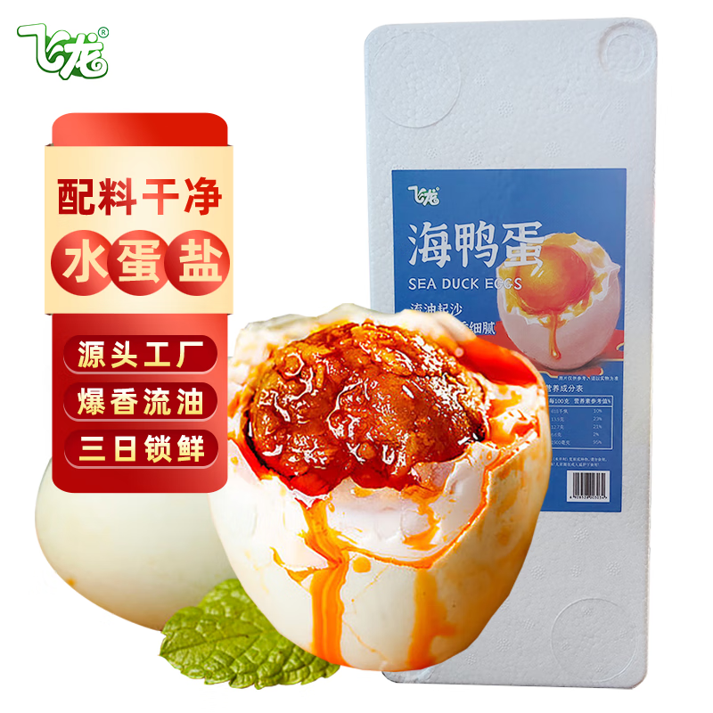 飞龙流油咸鸭蛋60g*10枚蛋黄咸香流油咸蛋烤海鸭蛋独立包装流油沙香
