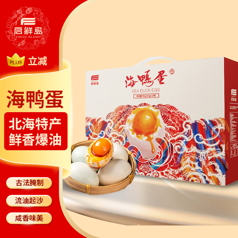 启鲜岛咸鸭蛋礼盒65g*12枚 广西北海海鸭蛋 个大流油即食咸蛋黄特产送礼
